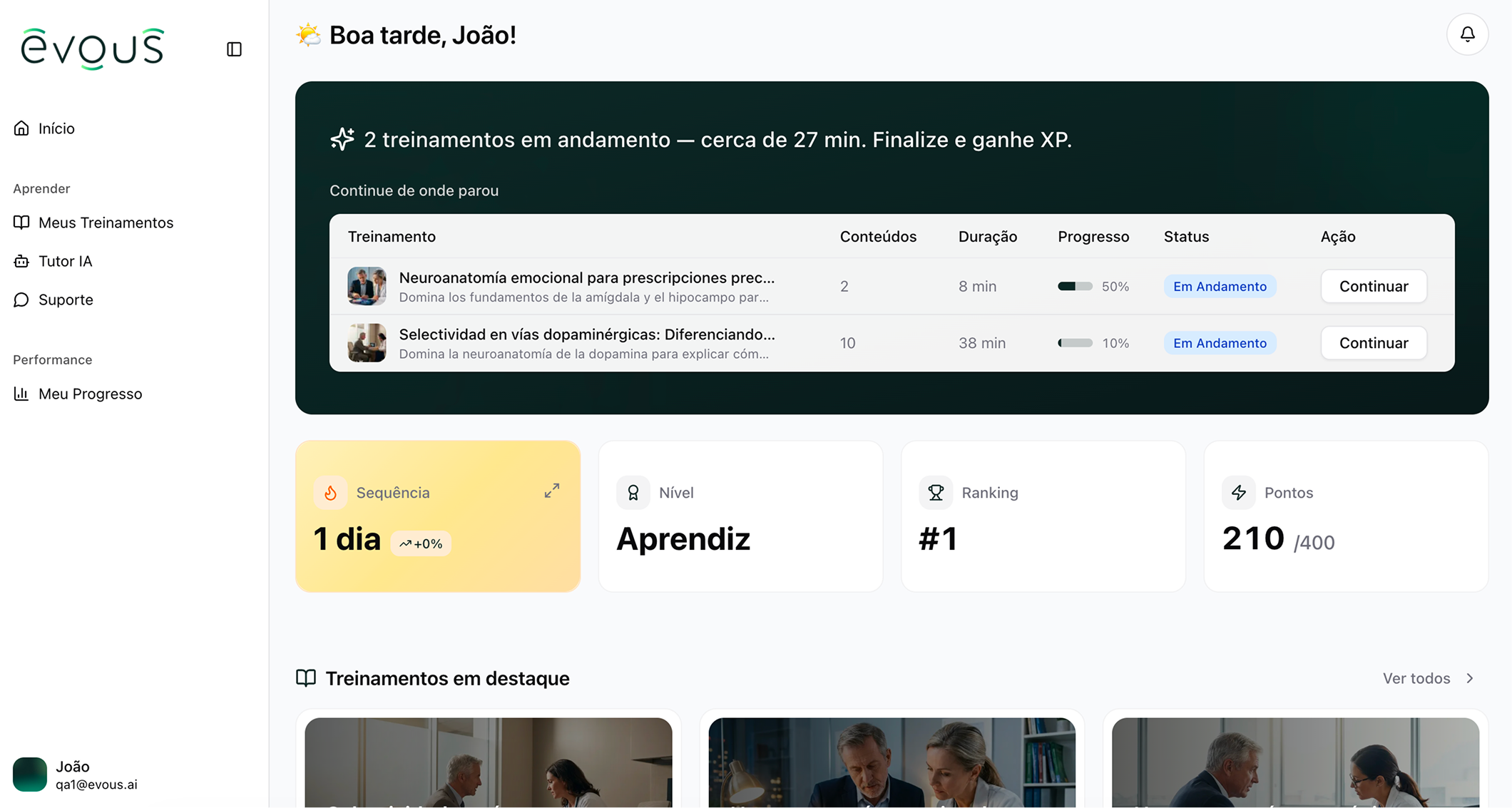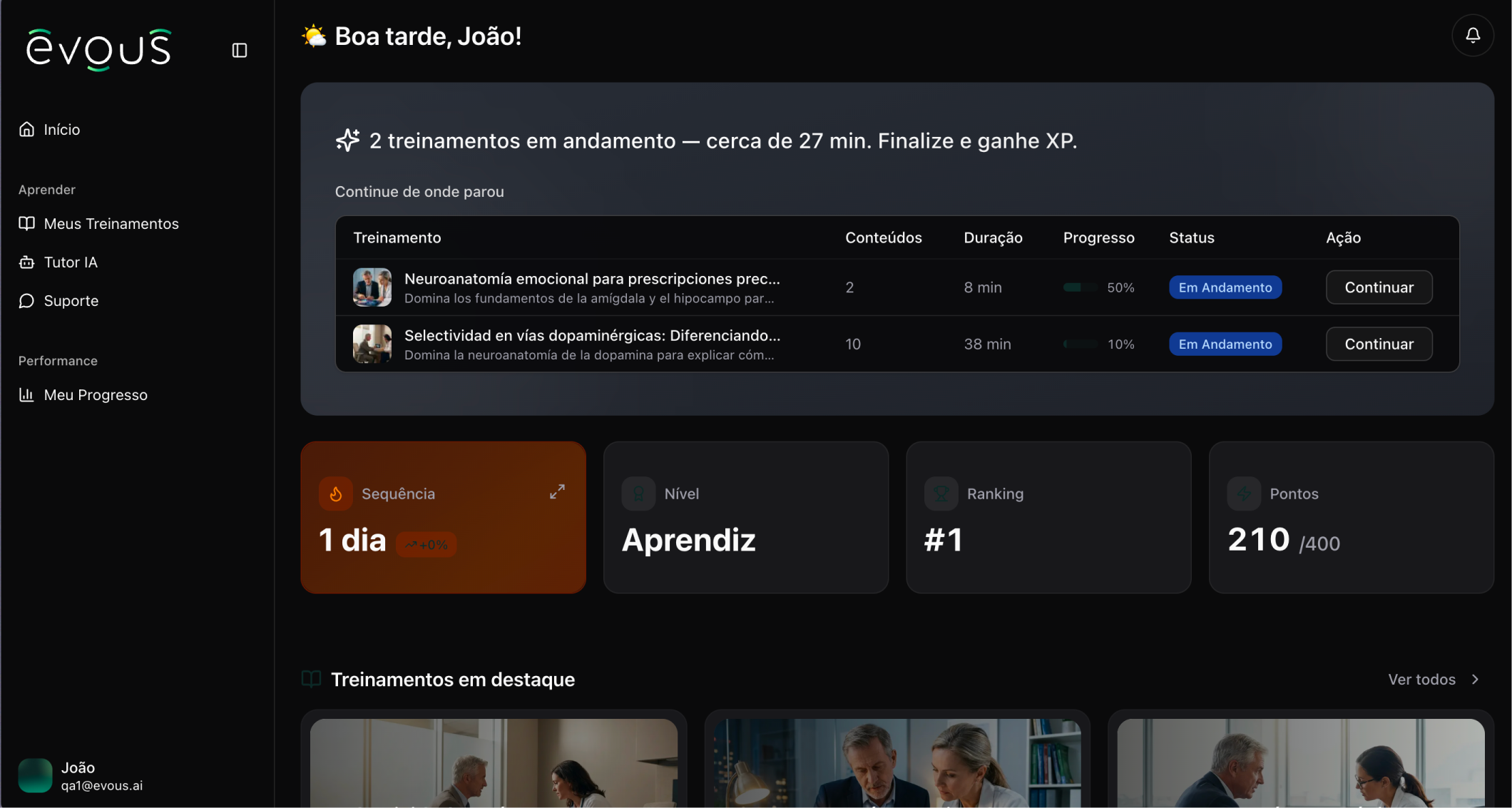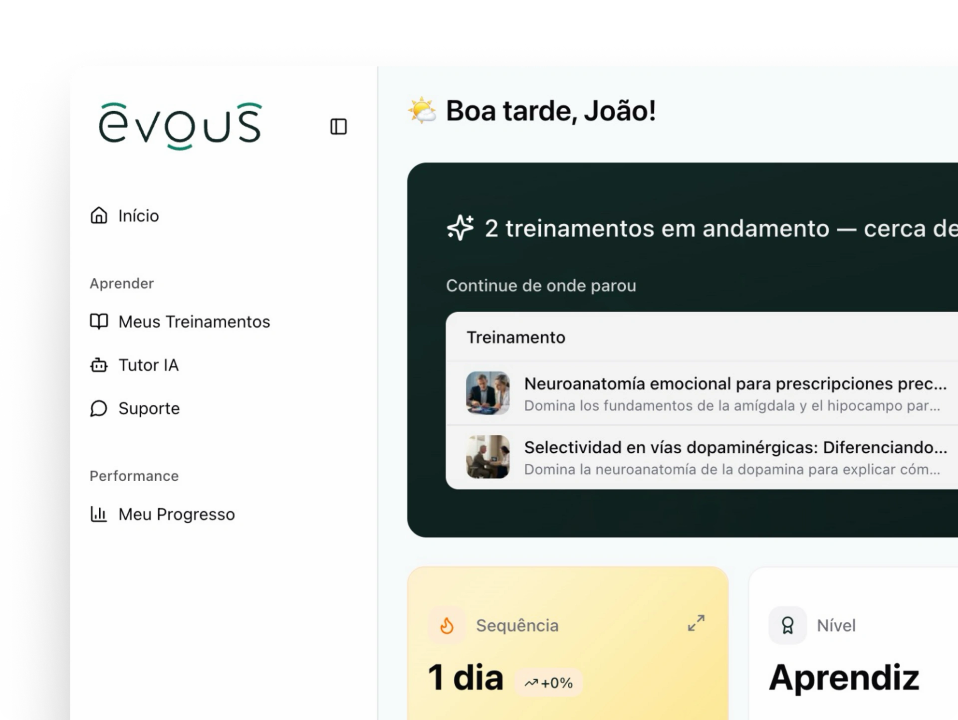 Veja na prática como o Evous Learn transforma treinamento em resultado real para sua força de vendas.